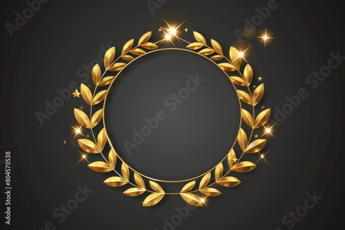 Elegant golden laurel wreath on a striking black backdrop. Perfect for awards ceremonies or achievements