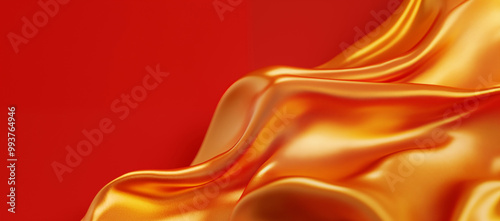Elegant golden silk cloth on red background