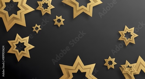 Elegant golden stars scattered on a dark background, celebrating a special occasion or festive event.