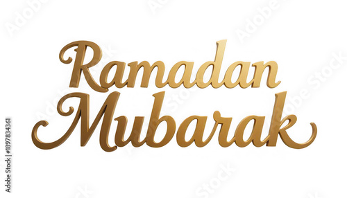 Elegant golden three dimensional calligraphy design spelling out ramadan mubarak for religious holiday celebrations and greeting cards