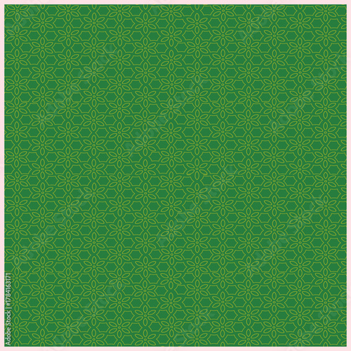 Elegant green geometric pattern with interlocking floral shapes forming a seamless decorative background design.