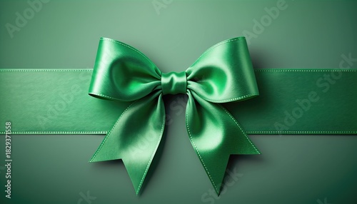 Elegant Green Ribbon Bow on a Green Background.