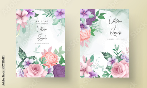 elegant hand drawing flower and leaves invitation card template