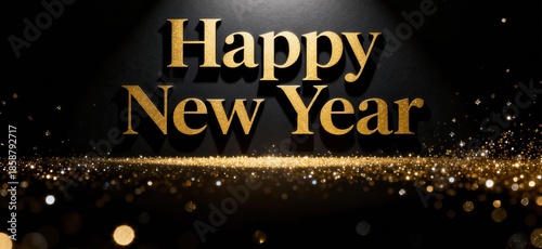 Elegant Happy New Year Greeting with Gold Sparkling Text Effect