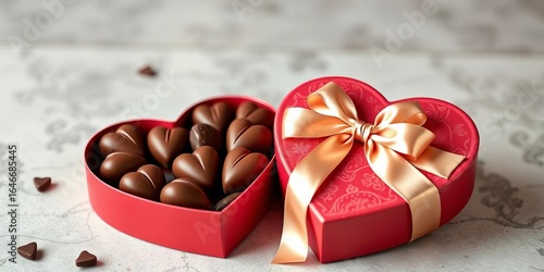 Elegant heart-shaped box of chocolates, tied with a satin ribbon, gift, sweet