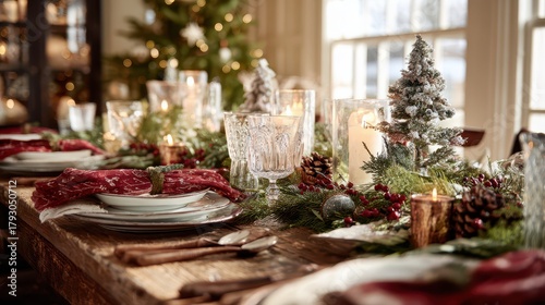 Elegant Holiday Table Setting Featuring Pine Garland and Gold Accents