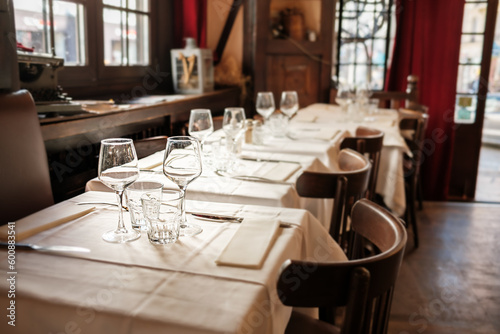 Elegant Indoor Restaurant Table Setting with Glasses and Dish