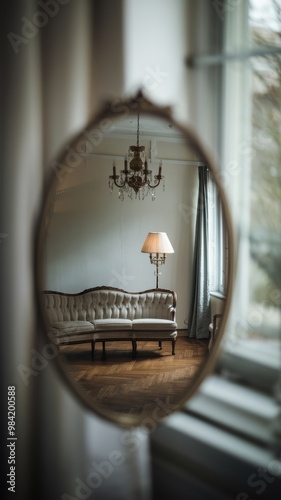 Elegant Interior Reflection with Vintage Sofa and Lamp