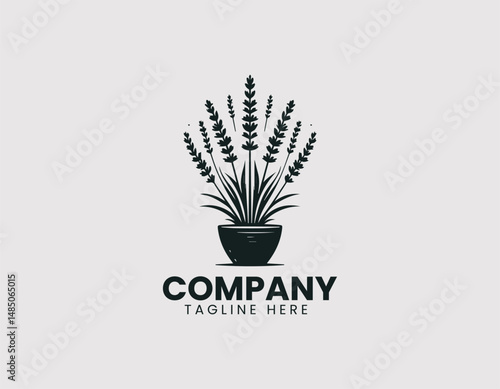 Elegant Lavender Plant in Simple Pot Vector Logo Design, Graceful Lavender Plant Simple Pot Vector Logo