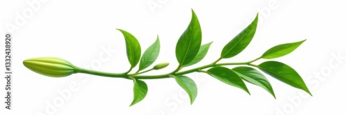 Elegant lily branch with lush green leaves, isolated , image, background