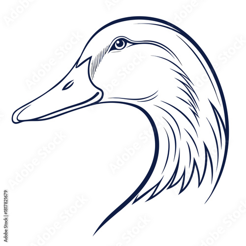 Elegant line art illustration of a ducks head in profile, showcasing its graceful neck and detailed eye, perfect for nature and wildlife themes