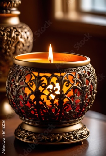 elegant luxury candle decorative holder illuminating stylish home interior atmosphere, wax, light, ambiance, cozy, decoration, ornate, chic, sophisticated