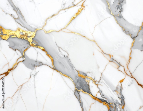 Elegant Marble Vein: A close-up showcases the captivating beauty of natural marble, its surface interwoven with golden veins and striking grey hues, exuding opulence and sophistication.