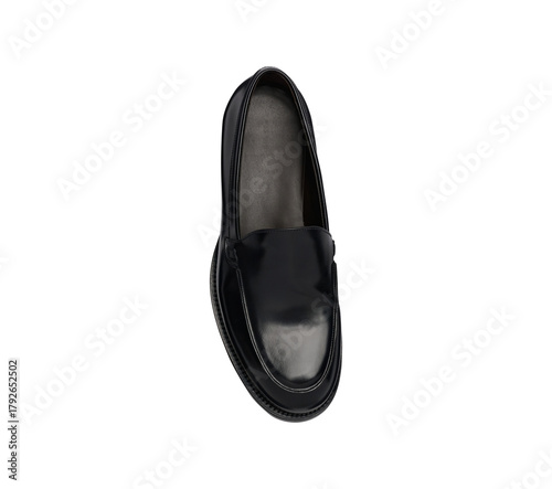 Elegant Men's A Black leather loafer shoes, shiny surface, black sole, suitable for both formal and casual wear classic elegance shoes, transparent background.