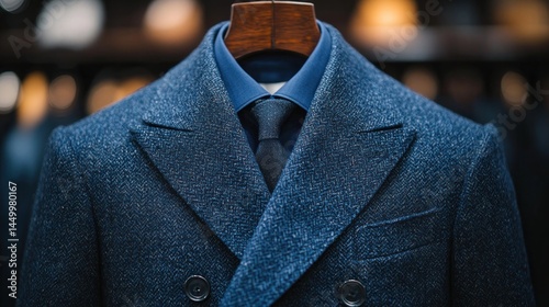 Elegant Menswear: A Close-Up of a Navy Blue Double-Breasted Coat