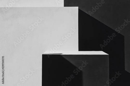 Elegant minimalism in stark black and white, where clean lines and soft shadows form a subtle abstract composition of refined geometry