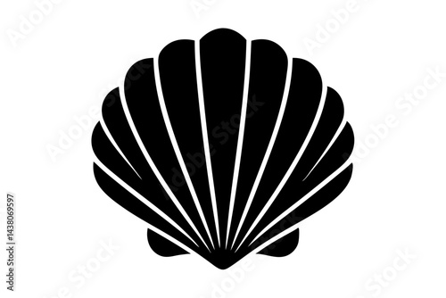 Elegant minimalist black and white seashell illustration coastal aesthetic decoration, seashell, scallop, shell, sea, ocean, beach, coastal, nautical, summer, marine, shellfish, mollusk, graphic