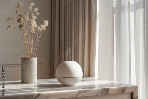 Elegant Minimalistic Air Freshener Diffuser on Marble Table in Sunlit Room - Perfect for Home Decor