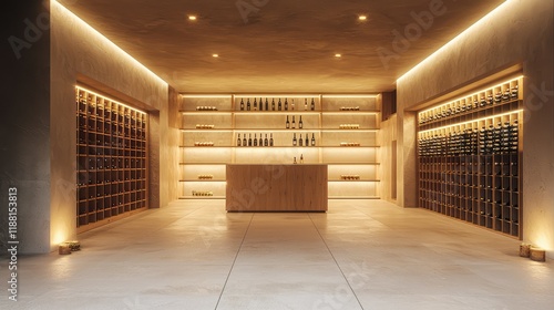 Elegant Modern Wine Cellar Interior with Ambient Lighting Design