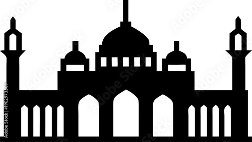 Elegant mosque silhouette with domes and minarets