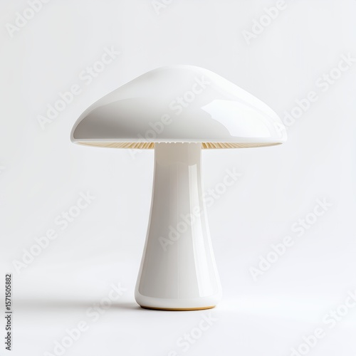 Elegant mushroom-shaped ceramic lamp, providing a soft glow, simple design on white background