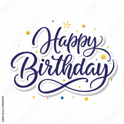 Elegant navy blue "Happy Birthday" calligraphy with confetti.