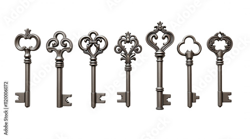 Elegant Ornate Keys Illustration on Transparent Background for Design and Overlay