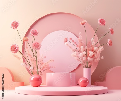 Elegant Pink Floral Arrangement with Modern Minimalist Design for Stylish Decor and Event Backdrops