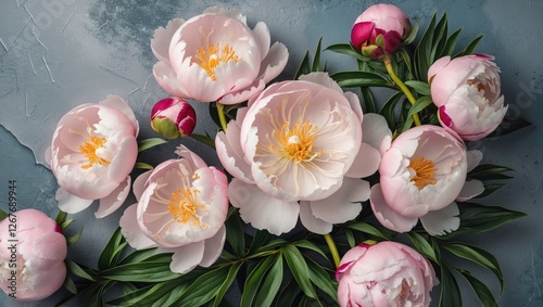 Elegant Pink Peony Flowers Arrangement on Textured Background with Ample Copy Space for Design and Creative Use