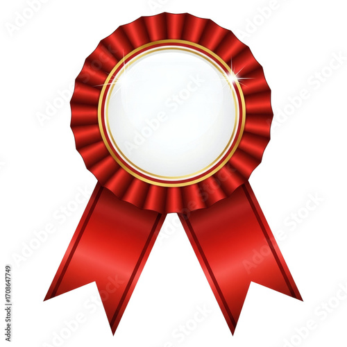 Elegant red ribbon award with golden trim and blank center for customization