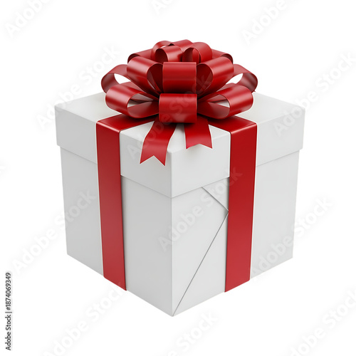 Elegant red ribbon gift box isolated on transparent background
