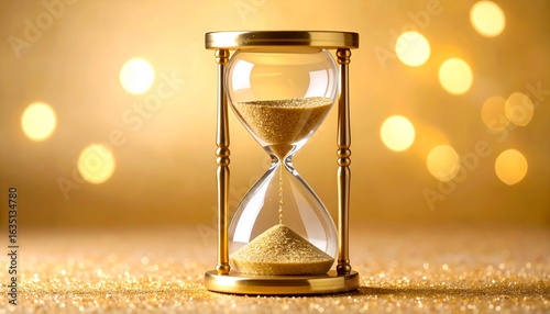 Elegant Sand Timer Measuring Passing Time on a Gold Glitter Background