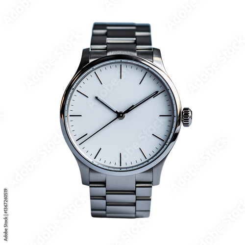 Elegant Silver Dress Watch with White Face Isolated on Transparent Background