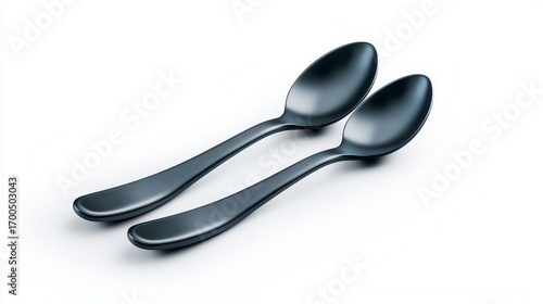 Elegant silverware setting two spoons and fork on pristine white background