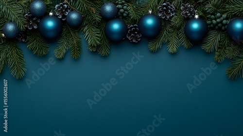 Elegant Teal Christmas Ornament Border Design