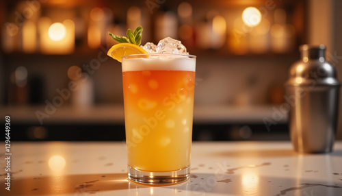Elegant Tequila Sunrise cocktail in stylish bar setting, evening delight