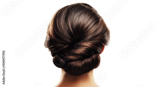 Elegant updo with loose strands framing the face, a timeless women's hairstyle for formal occasions, isolated on white