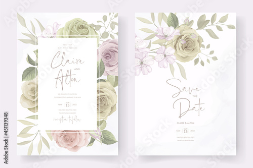 Elegant wedding card template with blooming rose ornament