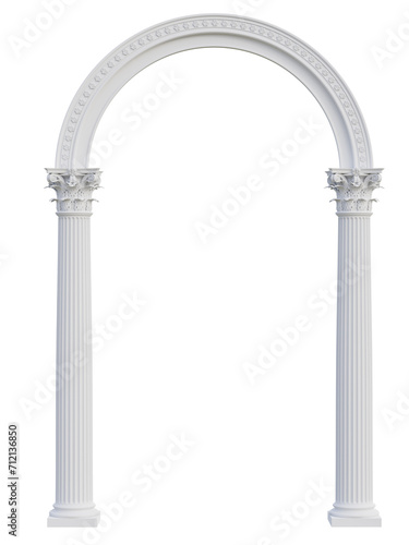 Elegant white arch with Corinthian style column isolated on transparent background 3d render