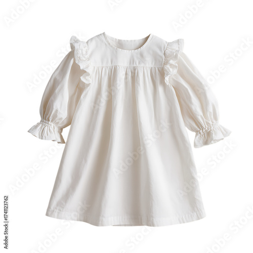 Elegant white baby dress with ruffled sleeves isolated on transparent background