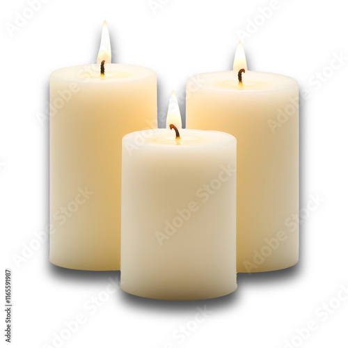 Elegant White Candles with Flickering Flames on Transparent Background 1