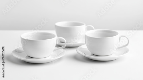 Elegant White Coffee Cups and Saucers Displayed on a Minimalist Surface, Perfect for Stylish Dining and Sophisticated Coffee Moments in Modern Settings