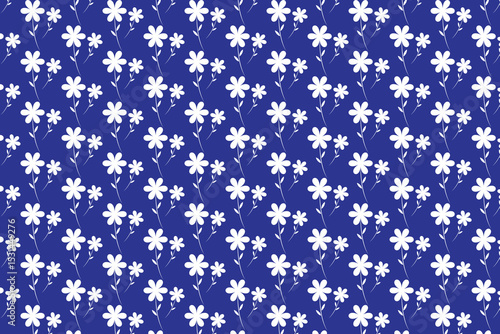 Elegant White Flowers on Deep Blue Background Seamless Pattern Design for Textile Printing