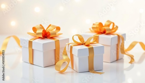 Elegant White Gift Boxes with Golden Ribbons