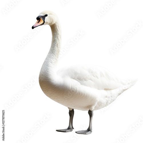 Elegant White Swan on Black Background on a white background.