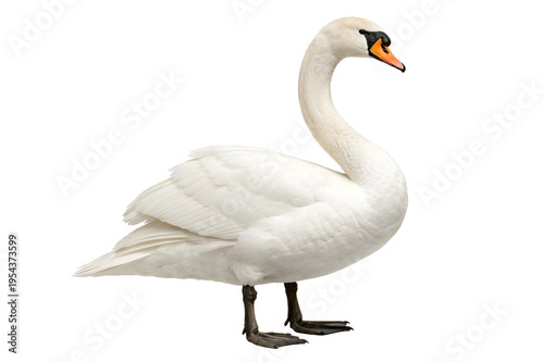Elegant White Swan Standing Isolated on White Background Realistic Bird