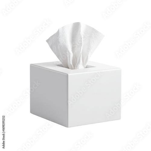 Elegant white tissue box dispenses soft paper napkins on an isolated field showcasing cleanliness