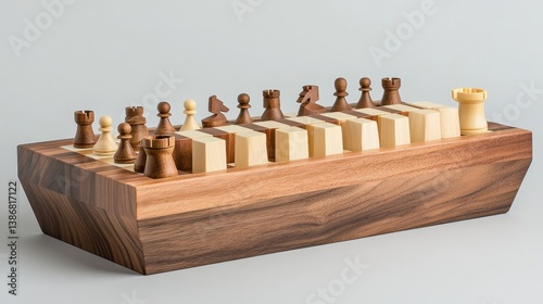 Elegant Wooden Chess Set on a Simple Background Displayed in Profile