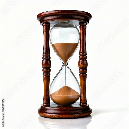 Elegant wooden hourglass showcasing the passage of time with flowing sand.