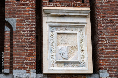 Elements of the architecture of the ancient Castle of Sforza in Milan Italy.